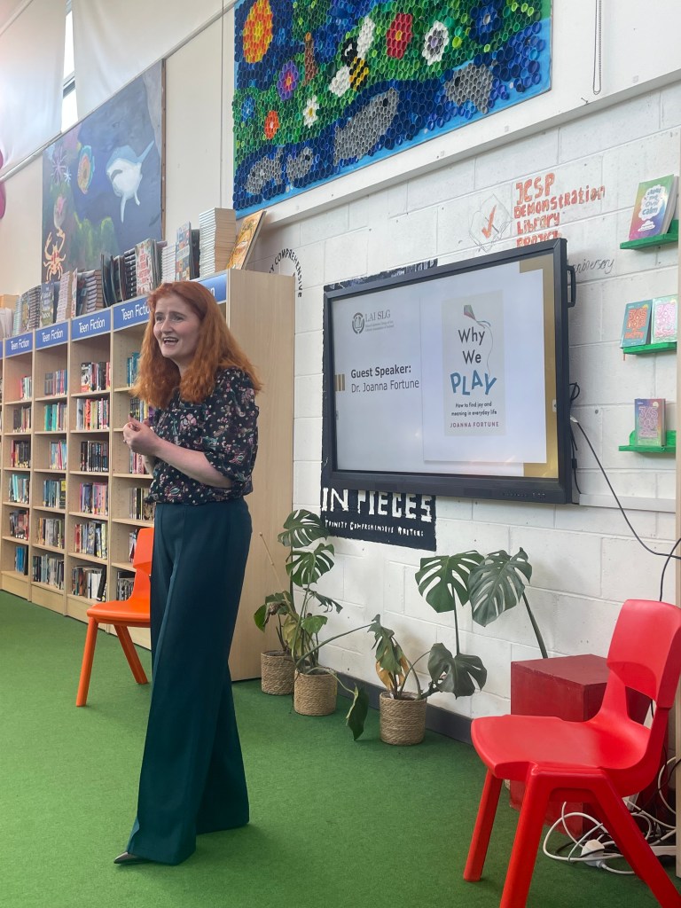On Thursday, May 15th, 2025, the LAI SLG Conference and AGM took place in the JCSP Library at Trinity Comprehensive School in Ballymun. The theme of this conference was ‘The Power of Play’ and the event was fun and engaging while providing solid insight into how to broach serious issues through the medium of play. The conference was divided into three main parts which were comprised of a presentation by guest speaker Dr. Joanna Fortune, a workshop entitled ‘Are we on the cusp of a play renaissance in education?’ facilitated by Ronan Healy of How Might We, and a presentation and Q & A by JCSP Librarians Shane Doyle and Neil Kettles on Dungeons & Dragons and Chess respectively. The day also included a short demonstration by Cogs Toys and Games and was followed by the LAI SLG AGM which all members were invited to attend.